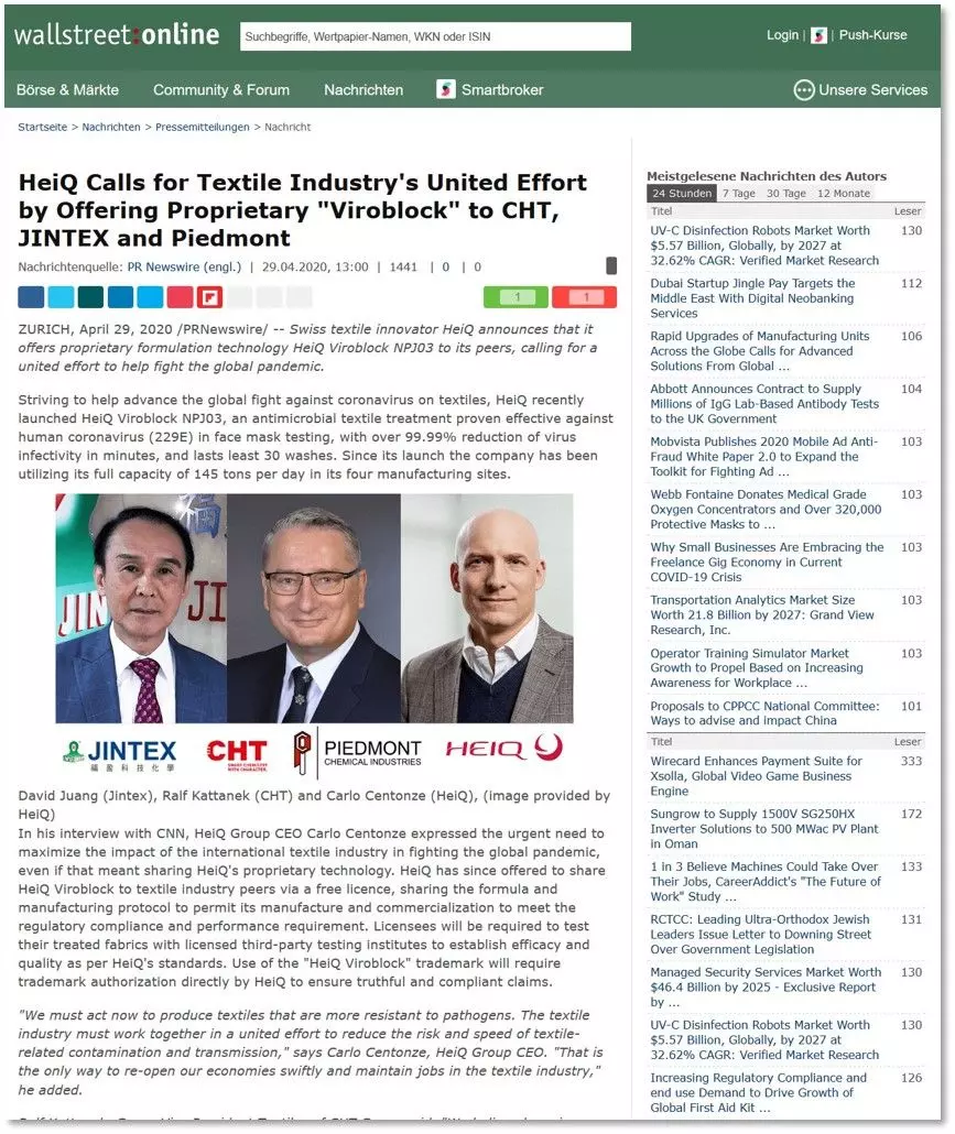 HỢP TÁC CHIẾN LƯỢC TOÀN CẦU JINTEX & HEIQ - ĐOÀN KẾT TRONG THỜI KỲ KHỦNG HOẢNG ĐỂ GÓP PHẦN CHỐNG LẠI DỊCH BỆNH.